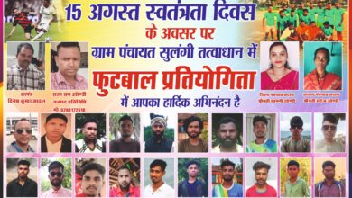 सुलंगी के उपरपारा में स्वतंत्रता दिवस पर होगी दो दिवसीय फुटबॉल प्रतियोगिता प्रथम पुरस्कार ₹10,001, द्वितीय ₹5,001 – 15 अगस्त…