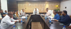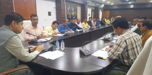 संग्रहण केन्द्रों से धान उठाव में धीमी गति की समीक्षा करने कलेक्टर ने ली राइस मिलर्स की बैठक।