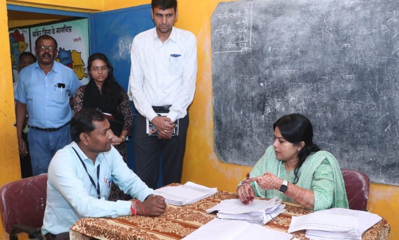 उत्तर बस्तर कांकेर – मतदाता सूची के द्वितीय विषेष संक्षिप्त पुनरीक्षण कार्यक्रम अंतर्गत 01 अक्टूबर 2023 की स्थिति में पात्र मतदाताओं का नाम मतदाता सूची में जोड़ने, मृत अथवा स्थाई रूप से पलायन करने वाले व्यक्तियों का नाम मतदाता सूची सें विलोपित करने तथा मतदाता सूची में त्रुटि होने पर उसे संषोधित करने का कार्य सभी बीएलओ द्वारा 11 सितम्बर तक किया गया। कलेक्टर एवं जिला निर्वाचन अधिकारी डॉ. प्रियंका शुक्ला ने आज चारामा तहसील के मतदान केन्द्रों का औचक निरीक्षण कर बीएलओ द्वारा मतदाताओं के भरे गये फॉर्म 06, फॉर्म 07 एवं फॉर्म 08 की जांच किया, साथ ही बीएलओ द्वारा संधारित रजिस्टर का अवलोकन भी किया गया। अच्छा कार्य के लिए बीएलओ को शाबाशी दी गई तथा उन्हें मतदाता परिचय पत्रों का वितरण सुनिश्चित करने के लिए भी समझाइश दिया।