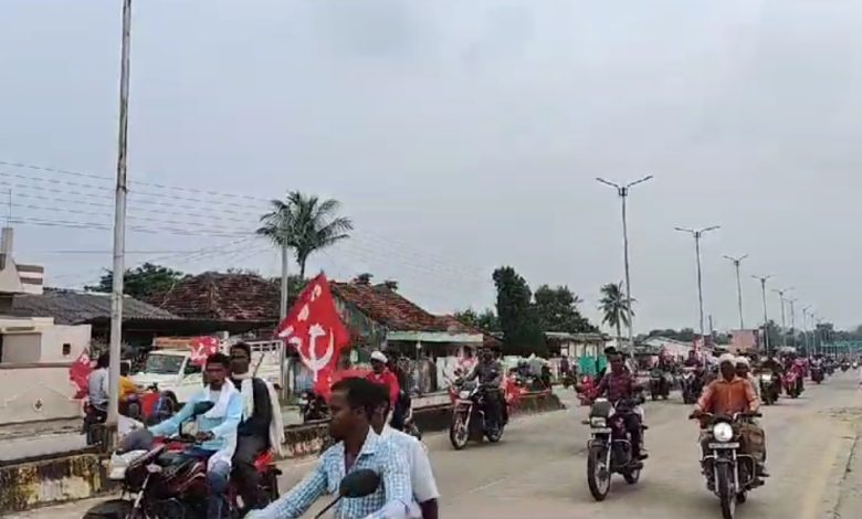 पोलावरम बांध के विरोध मे सीपीआई पार्टी की बाइक यात्रा पहुंची कोंटा ,