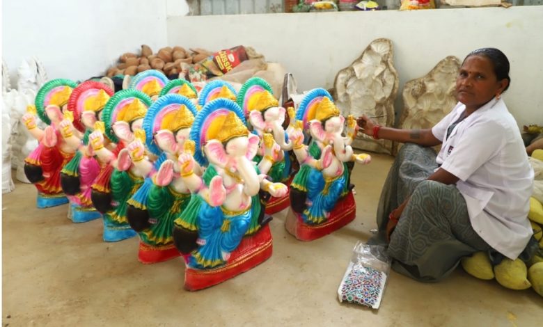 रायपुर : चन्द्रहासिनी समूह की दीदियों द्वारा निर्मित इकोफ्रेंडली गणपति विराजेंगे इस बार घरों और पंडालों में
