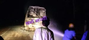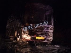 देर रात चलती बस में लगी आग,,बड़ा हादसा टला