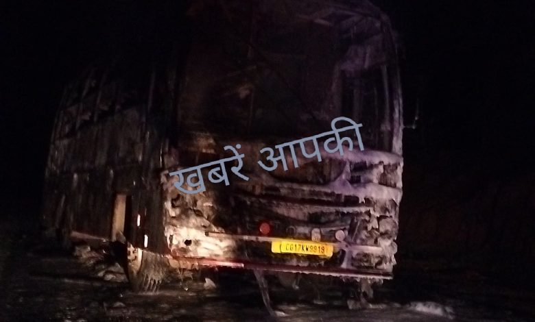 अन्तागढ़। ताडोकी थाना क्षेत्र के हवेचूर मोड़ के पास अचानक बस में आग लग गई,गमीनत रही की इस घटना में किसी के हताहत होने की खबर नही है, अंतागढ़ SHO रोशन कौशिक ने बताया ने बताया कि अम्बे बस सर्विस की बस रात करीब 11 बजे, नारायणपुर से रायपुर जा रही थी,बस का टायर अचानक फट गया और आग लग गई,बस में राम कृष्ण मिशन के 17 स्कूली बच्चे सवार थे ,जिन्हे रायपुर खेल आयोजन में भाग लेने के लिए ले जाया जा रहा था,सभी बच्चे सुरक्षित हैं।..बस स्टेट हाइवे क्रमांक 5 में मुख्य सड़क पर धू धू कर जल कर खाक हो चुकी है…आग पर फायर ब्रिगेड की टीम ने काबू पाया है,,,पुलिस बल द्वारा भी मौके पर पहुंचकर घटना की तस्दीक की गई है.