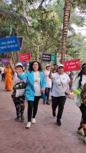 तदुपरांत सड़क सुरक्षा जागरूकता हेतु बैनर, पोस्टर के साथ उपस्थित विशाल मातृ शक्ति द्वारा भारतीय संस्कृति के विशिष्ट परिधान साड़ी में वाकाथॉन में पूरे उत्साह के साथ सहभागिता की। कार्यक्रम के अंत में उत्कृष्ट परिधान, ऊर्जावान प्रस्तुति एवं सर्वश्रेष्ठ दल हेतु क्रमशः टीम सीआरसी सायक्लोलोग, स्टेफिट विथ मी, आईटीएमएस टीम को जनप्रतिनिधि एवं समाजसेवी श्रीमती मीनल चौबे द्वारा पारितोषिक वितरण कर सम्मानित किया गया।
