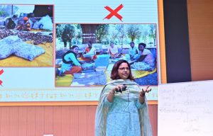 फाउन्डेशन फॉर इकोलॉजिकल सिक्योरिटी की संचालक सुश्री मंजीत कौर द्वारा आपूर्ति की श्रृंखला को विस्तार से समझाते हुए बताया कि कैसे संग्रहणकर्ता उत्पाद की कीमत को बढ़ा सकते हैं। छत्तीसगढ़ राज्य लघु वनोपज संघ के श्री भरत राजपुरोहित ने वनोपज के भण्डारण, भण्डारण का समय, भण्डारण में अपनाई जाने वाली सावधानियों के बारे में बताया। उन्होंने छत्तीसगढ़ राज्य लघु वनोपज संघ द्वारा निर्धारित मापदंड की जानकारी भी दी।