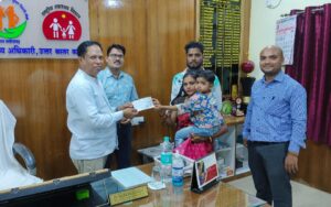 कलेक्टर एवं अध्यक्ष निलेश कुमार महादेव क्षीरसागर में संवेदनशीलता दिखाते हुए विक्रांत के बेहतर इलाज के लिए राधा मौर्य को भारतीय रेडक्रास सोसायटी जिला शाखा से आर्थिक सहायता राशि पंद्रह हजार रूपये जारी की। राधा मौर्य को सीएमएचओ एवं सचिव डॉ. महेश सांडिया ने जिला संगठक पवन कुमार सेन एवं डॉ विनोद वैद्य की उपस्थिति में चेक सौंपा। विक्रांत के आगे के ईलाज के लिए चिरायु और आयुष्मान योजना से सीएमएचओ के निर्देश पर प्रक्रिया की जा रही हैं।