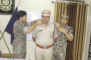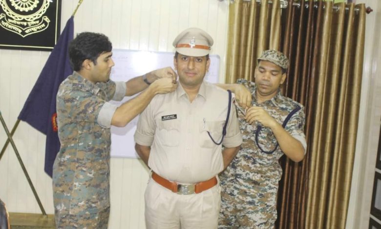 उपनिरीक्षक से निरीक्षक बने शौरभ उपाध्याय, पुलिस अधीक्षक ने स्टार लगाकर दी बधाई।