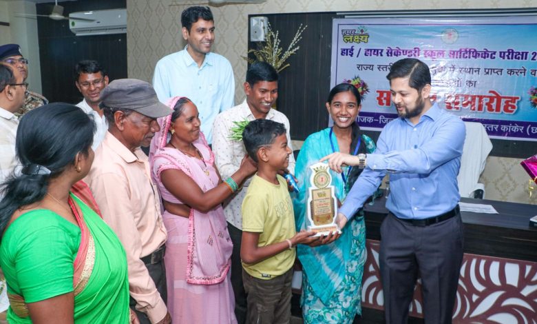 कक्षा दसवीं बोर्ड परीक्षा में प्रयास आवासीय विद्यालय कांकेर के छात्र श्री मयंक कोर्राम और कु. पायल अधिकारी ने 97.67 प्रतिशत अंक के साथ सातवें स्थान पर रहे। इसी तरह इसी विद्यालय की कु. वर्षा साहू और शासकीय उत्कृष्ट विद्यालय भानुप्रतापपुर की कु. तान्याश्री मढ़रिया ने 97.33 प्रतिशत के साथ 9वें स्थान और प्रयास आवासीय विद्यालय कांकेर की कु. मल्लिका मरकाम ने 97.17 प्रतिशत अंक अर्जित कर राज्य में दसवें स्थान पर रहीं। इसके अलावा कक्षा 12वीं की बोर्ड परीक्षा में शासकीय उच्चतर माध्यमिक विद्यालय तुड़गे की छात्रा कु. वेदिका निषाद ने 95.6 प्रतिशत अंकों के साथ राज्य में सातवें स्थान पर रहीं और शासकीय उच्चतर माध्यमिक विद्यालय मरोड़ा की कु. कंकना घरामी ने 95.4 प्रतिशत के साथ आठवें स्थान पर जगह बनाई। कु. कंकना वर्ष 2022 की प्रावीण्य सूची में कक्षा 10वीं में भी 97.5 प्रतिशत अंक अर्जित कर 7वें स्थान पर रहीं। इसी तरह संस्कार वैली उच्चतर माध्यमिक विद्यालय भानुप्रतापपुर की कु. निधि गोगड़ ने 95 प्रतिशत अंक के साथ राज्य में दसवां स्थान प्राप्त किया। इस अवसर पर जिला पंचायत के सीईओ श्री सुमित अग्रवाल, सहायक आयुक्त आदिवासी विकास के श्री एल.आर. कुर्रे सहित शिक्षा विभाग के अधिकारी-कर्मचारी एवं विद्यार्थियों के पालक उपस्थित थे।