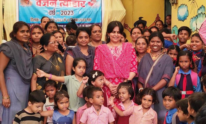 उत्तर बस्तर कांकेर  :-  जिले के सभी आंगनबाड़ी केन्द्रों में आज से 13 सितम्बर तक वजन त्यौहार मनाया जा रहा है, जिसमें आंगनबाड़ी केन्द्रों में दाखिल बच्चों का समुदाय के समक्ष वजन लिया जा रहा है। जिले के कलेक्टर डॉ. प्रियंका शुक्ला ने आज राजा पारा (आवासपारा) के आंगनबाड़ी केंद्र में वजन त्यौहार का औपचारिक शुभारंभ किया तथा वजन त्यौहार के प्रचार प्रसार हेतु तैयार किए गए सुपोषण रथ को हरी झंडी देकर रवाना किया गया। महिला एवं बाल विकास विभाग के सभी अधिकारियों को वजन त्यौहार सफल बनाने के लिए हर संभव प्रयास करने के निर्देष दिये। उन्होंने अपने समक्ष आंगनबाड़ी केंद्र के बच्चों का वजन तौलने को भी कहा। कुपोषण के प्रति सभी लोगो को मिलजुल कर प्रयास करने की समझाईष देते हुए उन्होंने कहा कि खान-पान और स्वास्थ्य के प्रति सचेत रहना सबकी जिम्मेदारी है। कलेक्टर ने कुपोषण से मुक्ति पा चुके बच्चों और उनकी माता को सम्मानित कर उपहार भी प्रदान किया। इस अवसर पर उनके द्वारा आंगनबाड़ी केंद्र के बच्चों को कविता सुनाने कहा गया तथा उनसे सवाल पूछे। जिले के कलेक्टर का नाम पूछे जाने पर बच्चों ने उनका नाम बताया। वजन  त्यौहार के अवसर पर गर्भवती माताओ, किशोरी बालिका, आंगनबाड़ी केंद्र में दर्ज बच्चों एवं उनके पालक, वजन त्यौहार को संपादित करने के लिए गठित दल के सदस्य, स्थानीय पर्यवेक्षक, जिला कार्यक्रम अधिकारी, जिला महिला बाल विकास अधिकारी तथा समीपस्थ स्कूली बच्चे एवं अध्यापक गण उपस्थित थे।